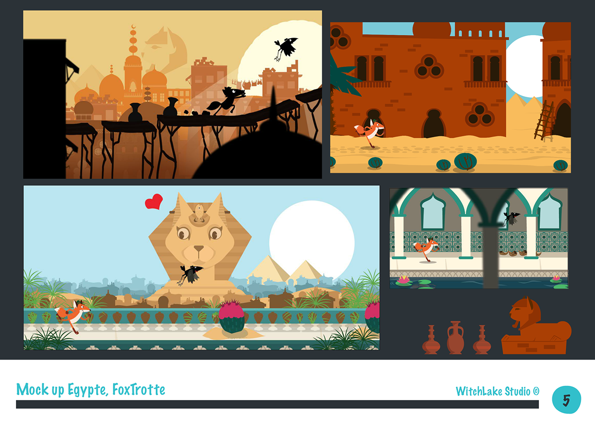 I worked at © WitchLake Studio, as an animator, game designer, and director of the teasers for the video game Foxtrottes.